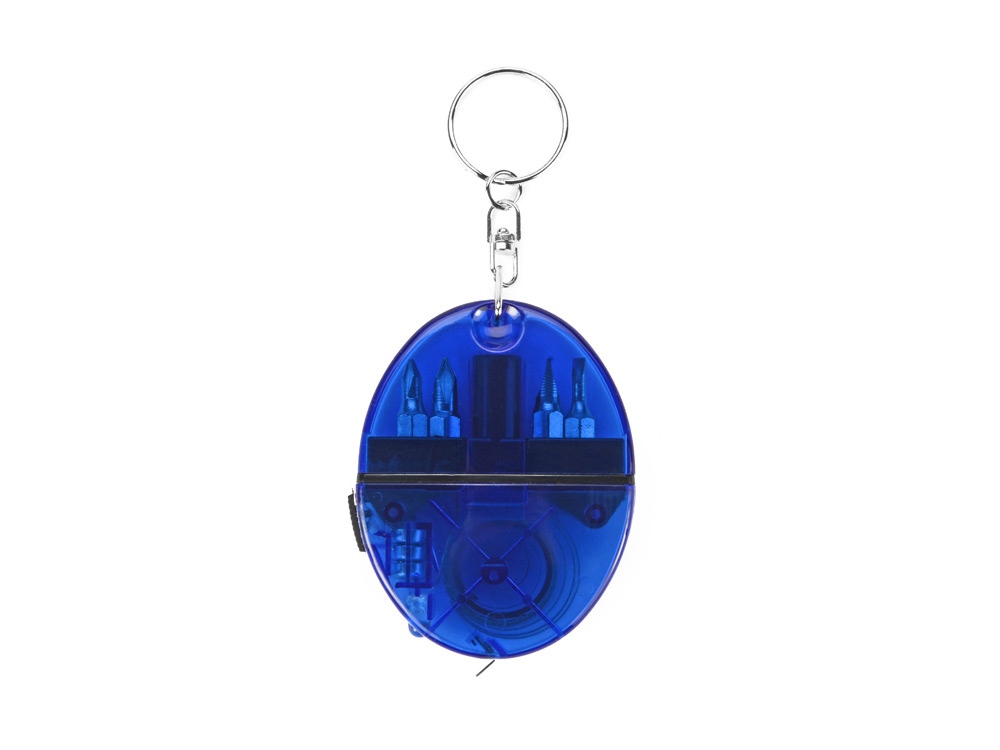 Оригинальный и многофункциональный брелок обладает ярким внешним видом, за которым скрывается весьма полезное содержание. Внутри брелока встроена рулетка, набор отверток и фонарик.