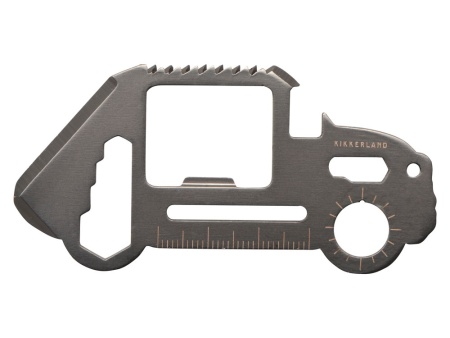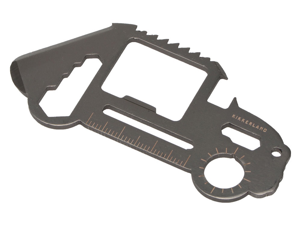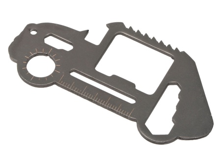 Функции, входящие в состав мультитула: нож, открывалка, режущий диск, консервный нож, 2-х и 4-х позиционный гаечный ключ, брелок, отвертка, линейка, гаечный ключ бабочка, указатель направления.