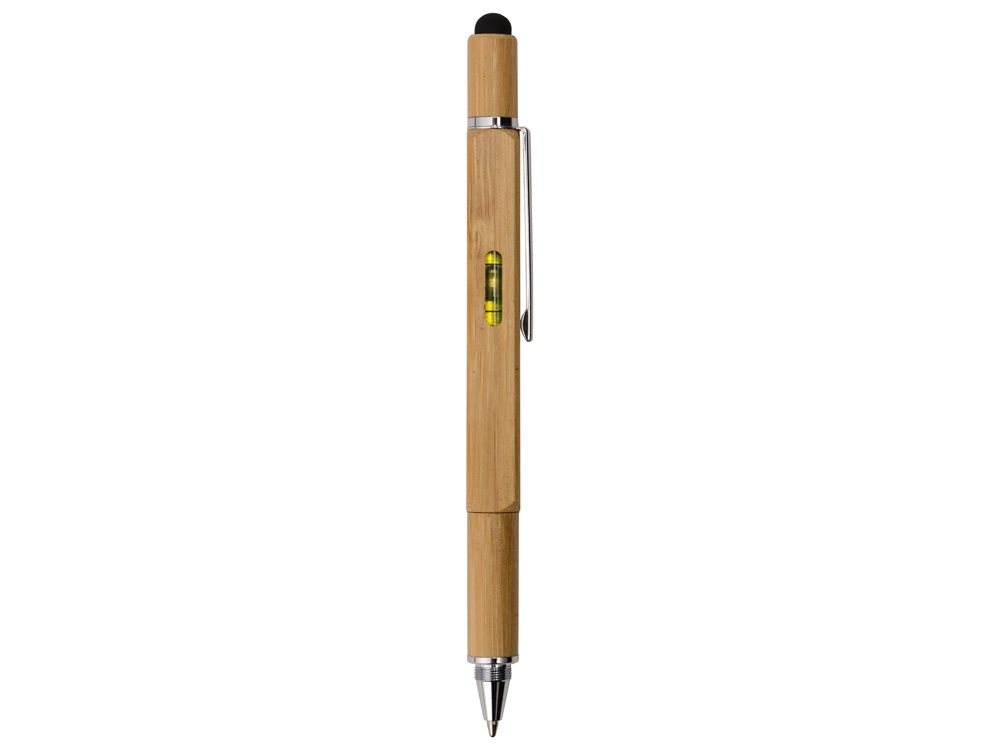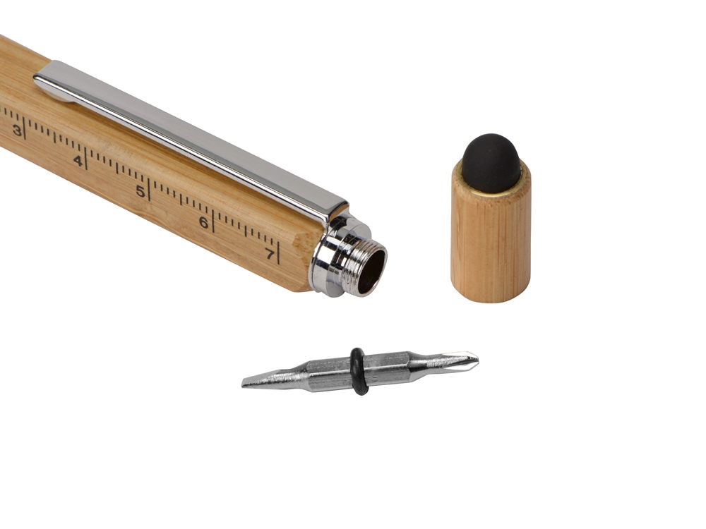 Четырехгранная шариковая ручка с поворотным механизмом в бамбуковом корпусе сочетает несколько полезных функций: