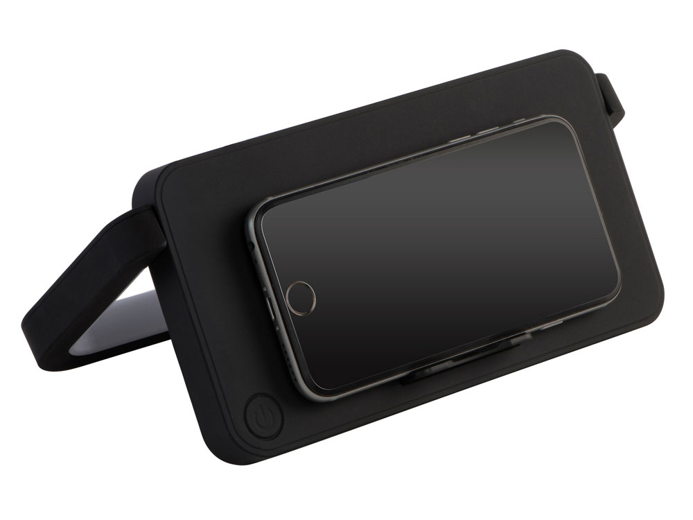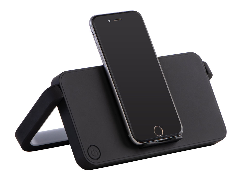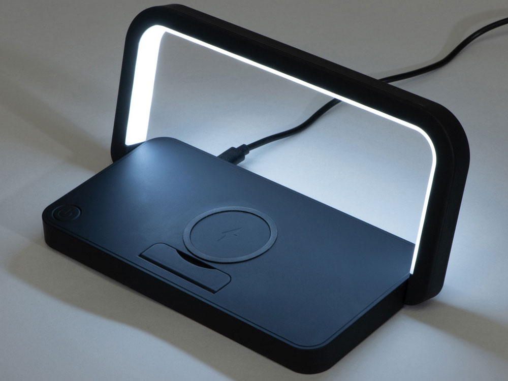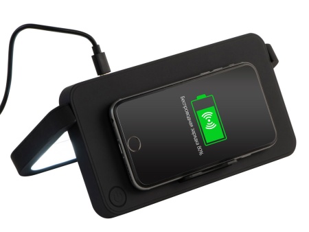 Лампа может заряжать смартфон как в горизонтальном положении, так и под углом — для этого можно использовать выдвигающуюся подставку, находящуюся по центру зарядной панели.