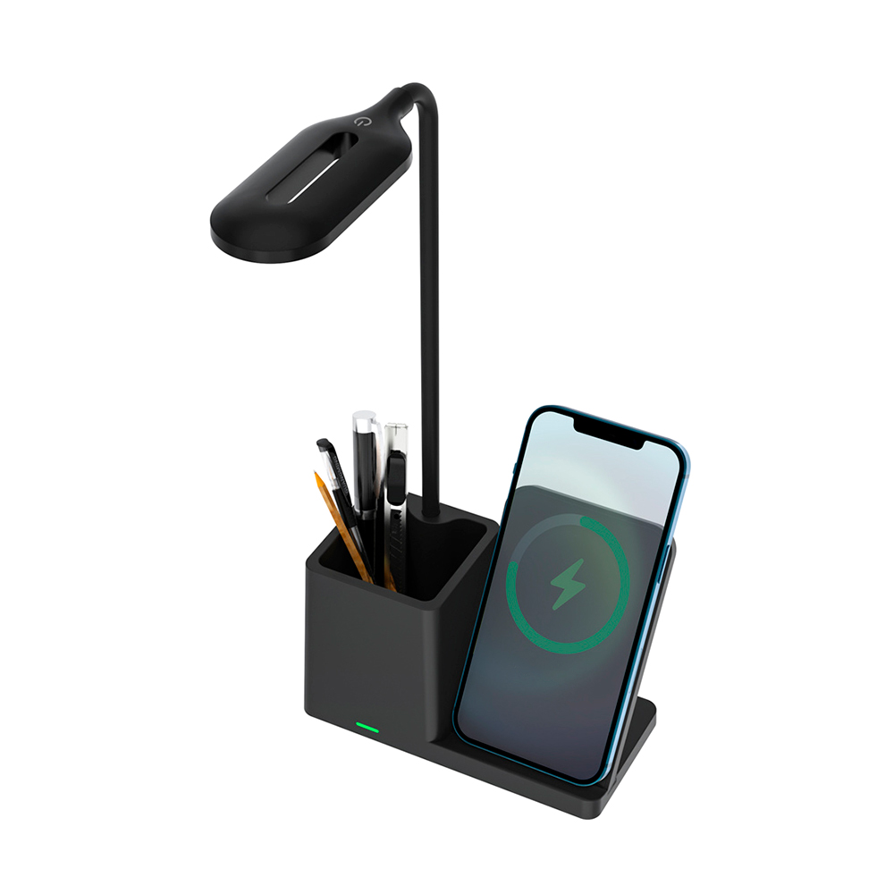Внешне это минималистичная настольная лампа Stark, а на практике устройство, в котором классический стиль сочетается с современными технологиями. Оснащена беспроводной зарядкой 10W с световым индикатором. Вход: 5V-2A, DC36V (потребляемая мощность 10W). Световой поток ≈ 200 lm. Индексом цветопередачи >80 CRA. В комплекте кабель USB и инструкция. Размер в упаковке: 16*26,3*8,3 см