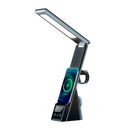 Настольная лампа Zeus имеет три режима настройки света (яркий, теплый, холодный), её можно использовать как в вечернее время, так и в качестве ночного освещения. С помощью настольной лампы Вы можете одновременно заряжать мобильный телефон, беспроводные наушники (AirPods) и часы (iWatch), и другие гаджеты, поддерживающие беспроводную зарядку. В лампе встроены часы и будильник. Отлично подойдет для письменного стола, в офис, гостиную и спальную комнату. Размер в упаковке: 27*10,5*6,5 см
