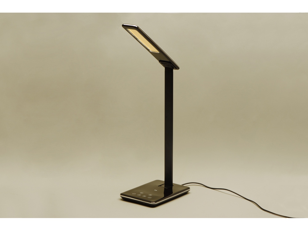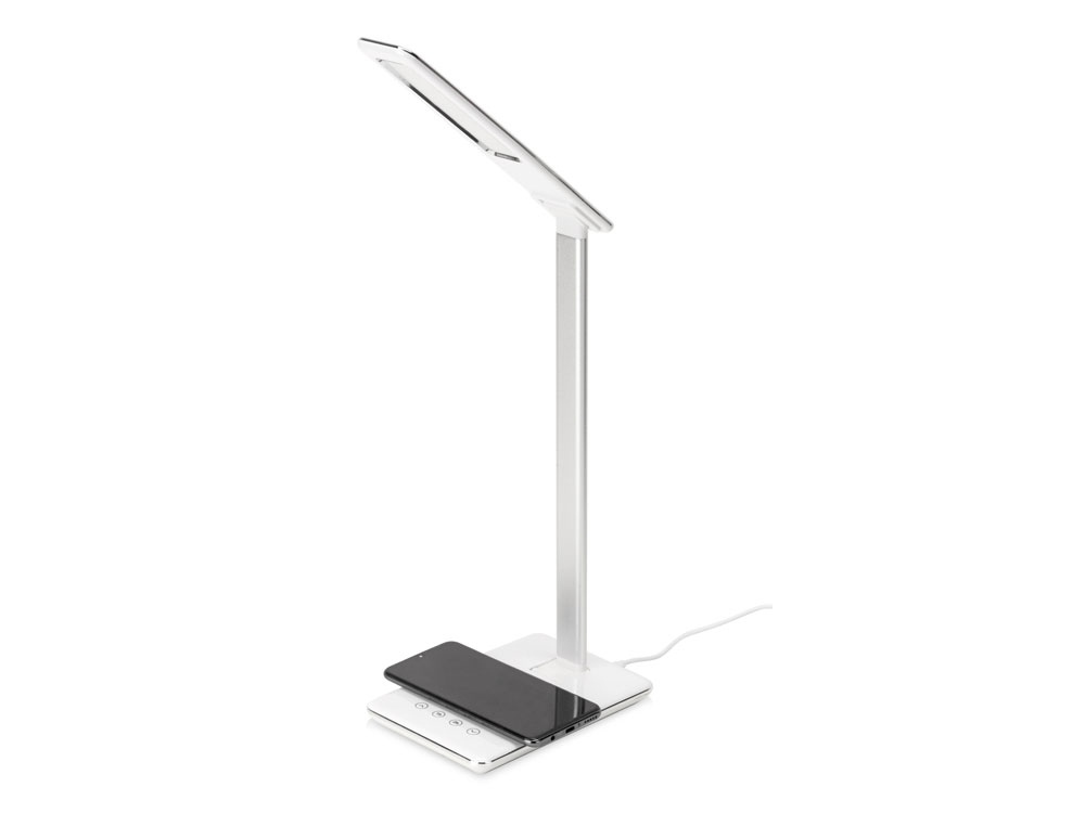 Умная функциональная настольная лампа с 3 режимами освещения: теплый желтый свет, нейтральный свет и холодный свет. Равномерно мягкий свет приятен и безопасен для глаз (отсутствует мерцание). На панели основания лампы можно также регулировать яркость и ставить таймер отключения (1 или 2 часа). В лампе предусмотрена беспроводная зарядка Qi-совместимы устройств, чтобы зарядить смартфон – просто разместите его в центре основания, и зарядка автоматически начнется. Выходной порт USB для проводной зарядки устройств. Благодаря продуманной конструкции лампа может принимать практически любые положения.