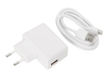 В комплекте адаптер питания 220 В, зарядный кабель и инструкция.