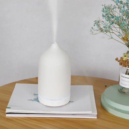 Аромадиффузор Fudzi c керамической колбой предназначен для увлажнения и ароматизации воздуха в помещениях. Внешний вид аромадиффузора напоминает заснеженный склон изящной горы Фудзи, вулкана, который может проснуться и выпустить “пар”. Светодиодная подсветка аромадиффузора имеет 7 цветов – красный, оранжевый, желтый, зеленый, голубой, синий, фиолетовый, напоминая рассвет на горе Фудзи. Смело добавляйте несколько капель эфирного масла в воду диффузора в целях ароматерапии. Работает аромадиффузор от сети, в комплекте имеется сетевой адаптер. Аромадиффузор имеет автоматическую защиту и последующее отключение при отсутствии воды; содержит функцию тайминга: