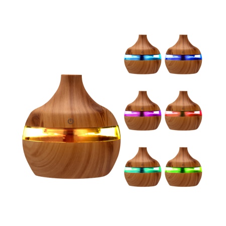 Светодиодный USB арома увлажнитель Holz – это и увлажнитель и арома-диффузор. Несколько капель арома масла в воду увлажнителя наполнит помещение ароматом и свежестью. Имеется 7-ми цветовая подсветка. Подходит для использования дома и в автомобиле. Размер индивидуальной упаковки: 11,5*11,5*12см/178гр