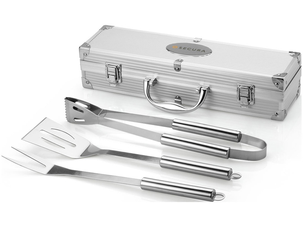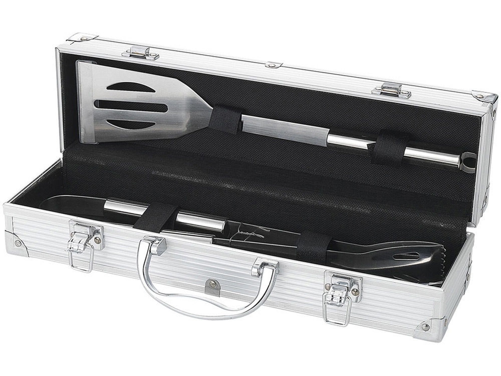 Набор для барбекю 3 предмета. Лопатка, щипцы и вилка в кейсе. Шильд для нанесения в комплекте.
