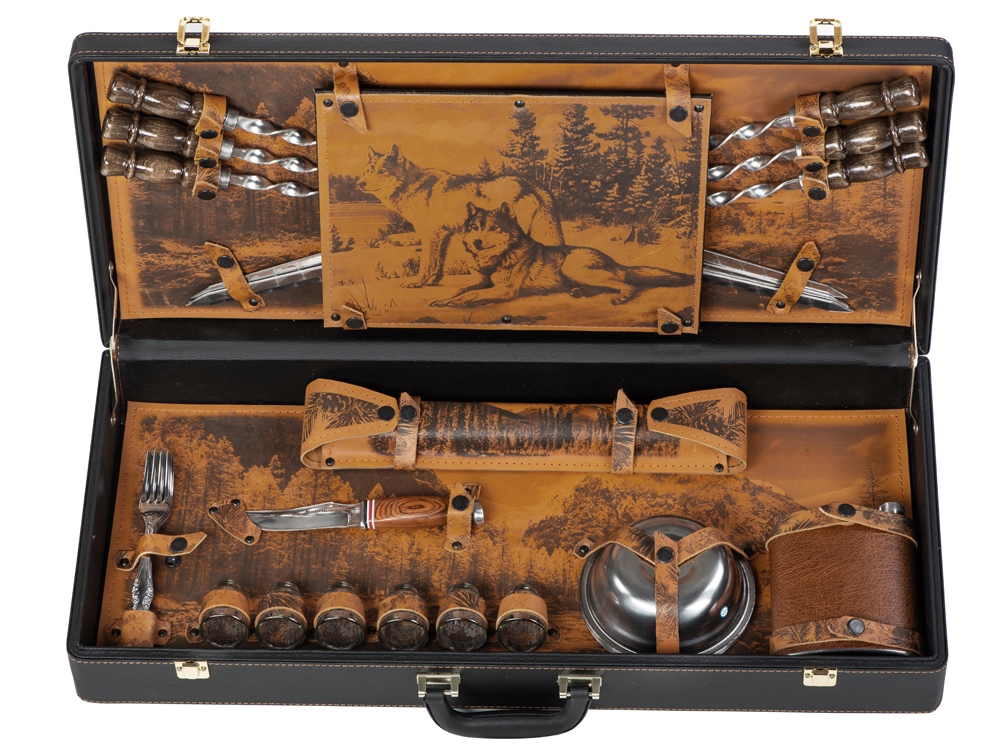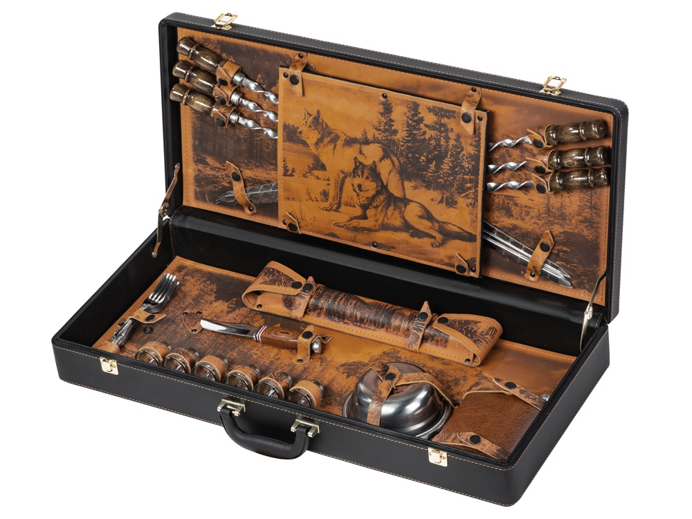Кейс из сплит-кожи, с повышенной износостойкостью, внутренняя отделка натуральная кожа с художественным выжиганием.