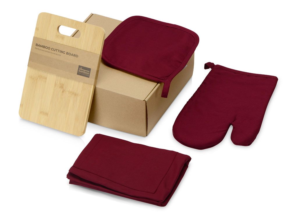 Подарочный набор Brand Chef Plus состоит из фартука, прихватки и рукавицы из хлопка, а также бамбуковой разделочной доски, поставляемых в крафтовой коробке. Фартук имеет карман на животе. Посадку фартука можно регулировать при помощи ремешка вокруг шеи. Бамбуковая разделочная доска идеально подходит для резки и красивой подачи блюд.