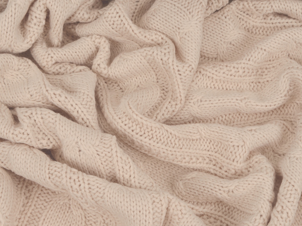 Объемный плед из акрила с орнаментом косы украсит любую комнату. Акрил - или синтетическая шерсть- способен отлично сохранять тепло. Поэтому плед станет лучшим выбором для холодного времени года.