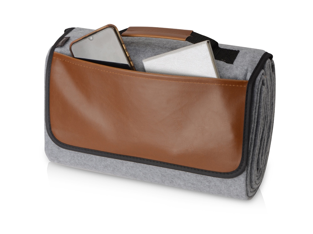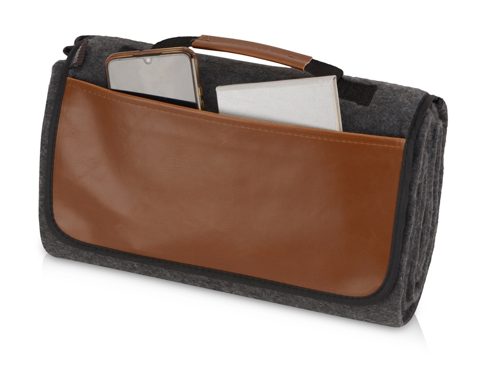 Мягкий и плотный плед не пропускает влагу благодаря непромокаемой подкладке. Для удобства использования предусмотрена ручка для переноски и карман на лицевой стороне для хранения мелочей или гаджетов размером 29 х 13 см.