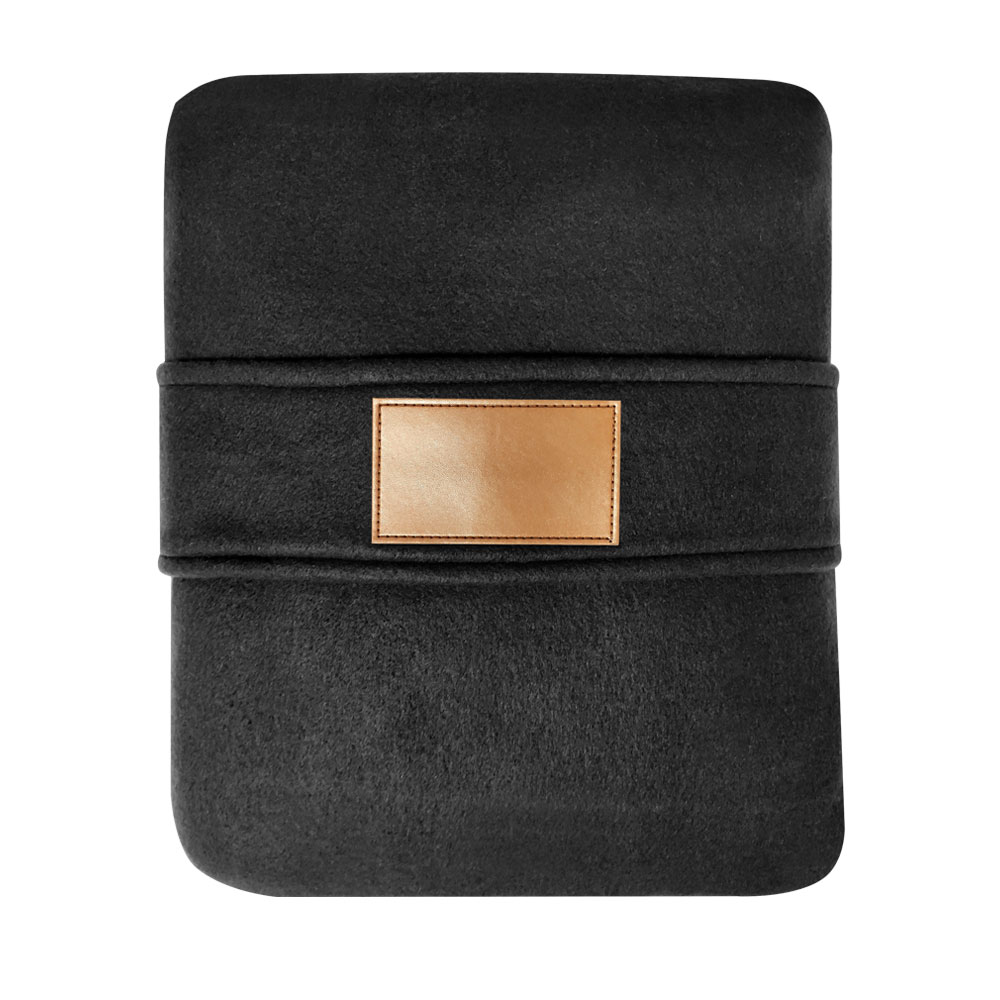 Плед Garda удобно взять с собой в дорогу. Используя специальный “пояс”, можно удобно разместить плед на ручке чемодана. А логотип, размещенный на шевроне из кождама, будет виден всем! Размер шеврона из кожзама - 6х10 см.
