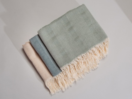 Плотный плед из натурального хлопка с бахромой по бокам. Можно использовать как одеяло или как покрывало для украшения интерьера.