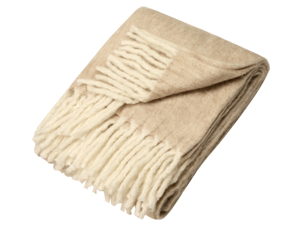 Мягкий и плотный шерстяной плед обладает отличными тепловыми характеристиками благодаря своему составу - натуральная шерсть и акрил (искусственная шерсть), а полиэстер помогает сохранять форму после стирки и способствует долговечности пледа. Украшен бахромой, поэтому может использоваться как декоративное покрывало.