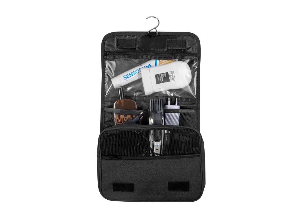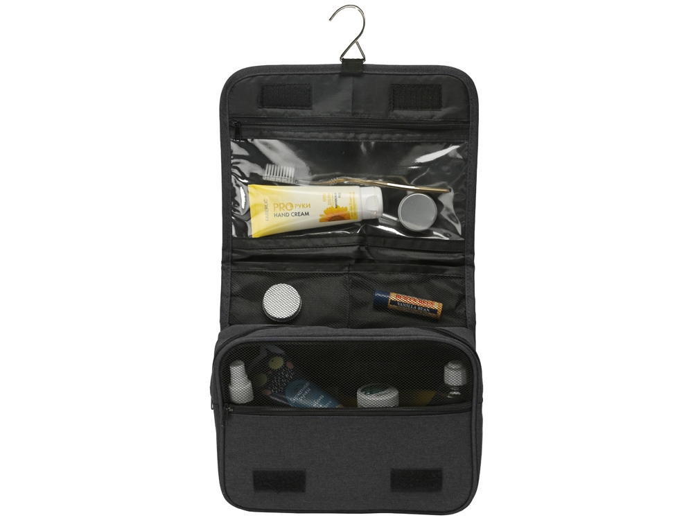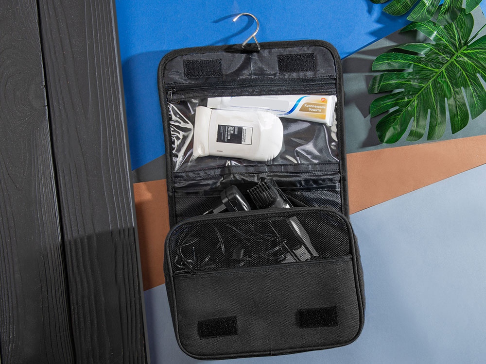 Несессер Planar оснащен металлическим крючком для подвешивания, который в сложенном виде убирается внутрь и не будет вам мешать. Для переноски несессер имеет ручку снаружи, а еще вы найдете плоский вместительный карман на его задней стороне. Клапан несессера закрывается на липучки и имеет три кармана — большой на молнии из прозрачного материала, который легко моется, даже в случае, если флакон изнутри разгерметизировался, и два из сетки, куда можно положить необходимые мелочи и которые удобнее использовать в висящем виде.