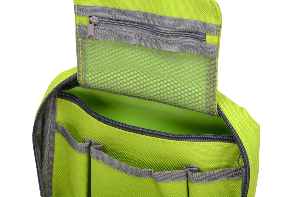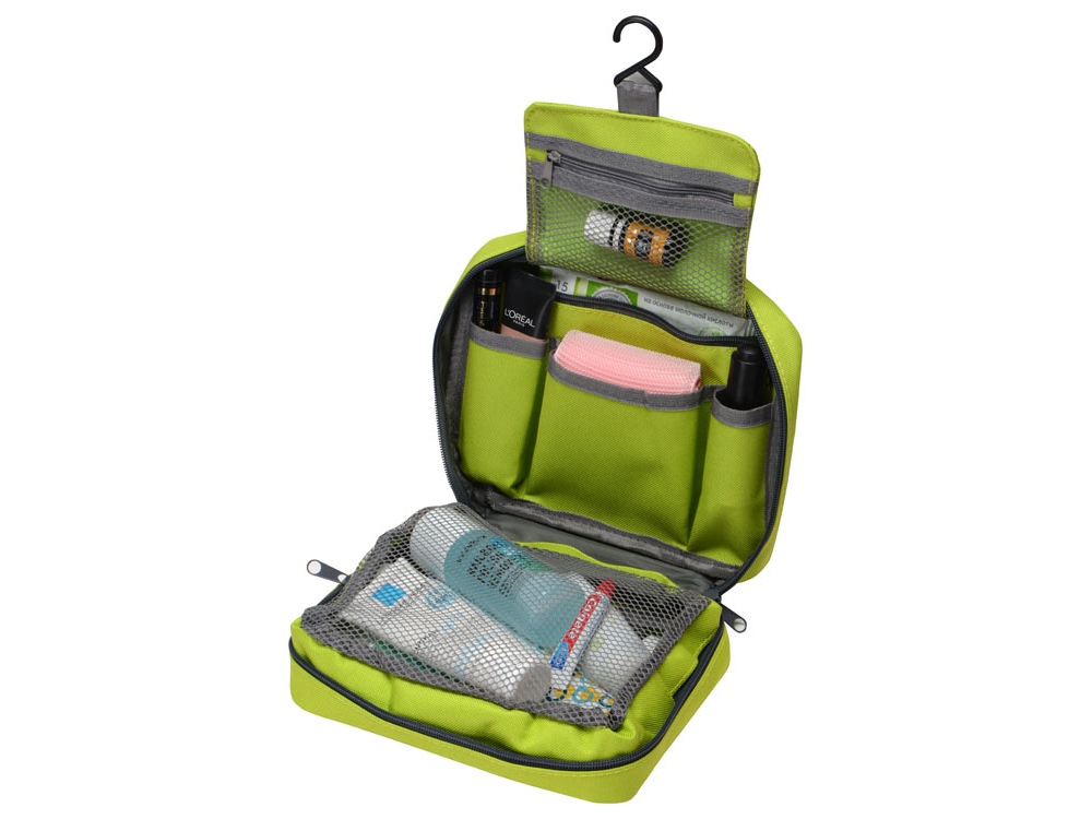 • Вместительное пространство с двумя большими отделениями и несколькими карманами дает возможность эргономично распределить весь дорожный арсенал косметических и туалетных принадлежностей.