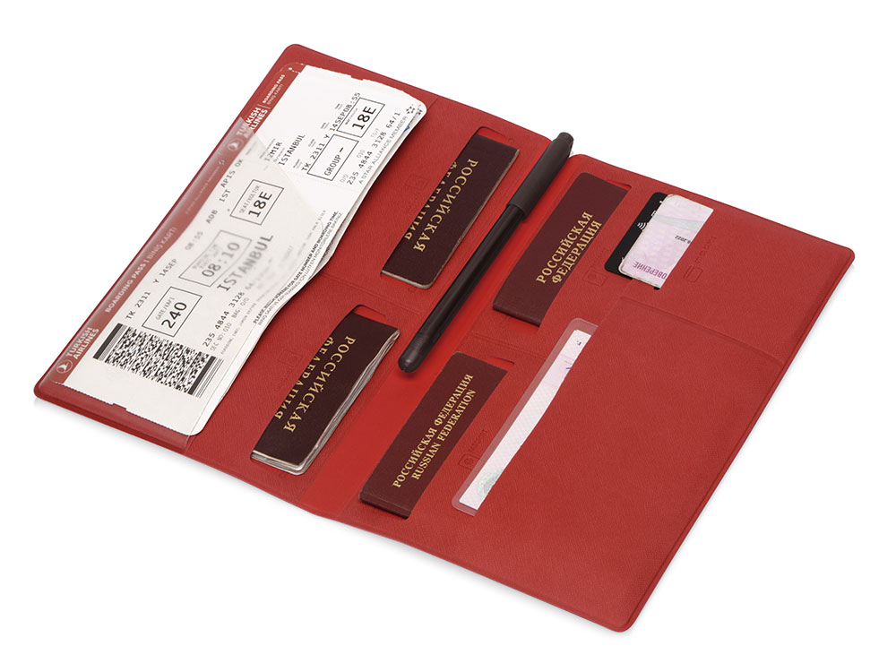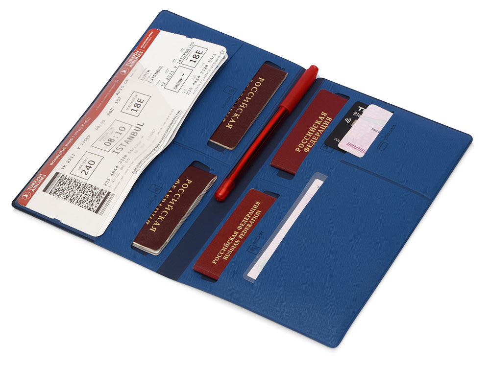 Внутри имеется восемь карманов, которые позволяют вместить документы для семьи из четырех человек. Документы аккуратно разложены и не утратят свою форму. Благодаря своим преимуществам органайзер для путешествий становится не только отменным подарком, но и эффективным рекламным средством.