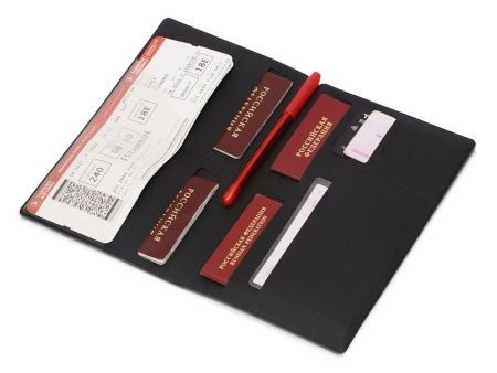 Внутри имеется восемь карманов, которые позволяют вместить документы для семьи из четырех человек. Документы аккуратно разложены и не утратят свою форму. Благодаря своим преимуществам органайзер для путешествий становится не только отменным подарком, но и эффективным рекламным средством.
