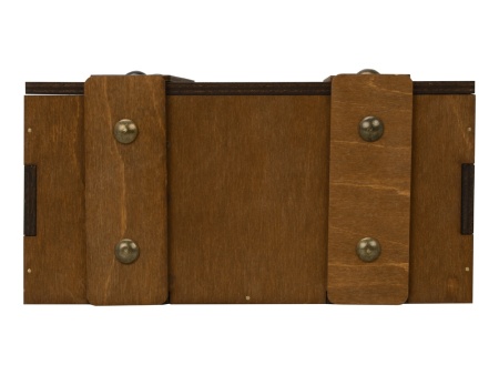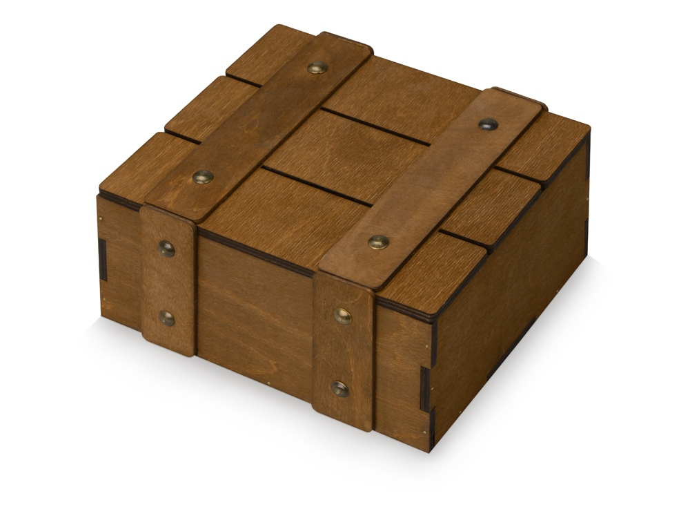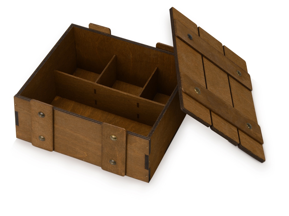 Деревянный подарочный ящик из коричневой шлифованной березовой фанеры станет идеальной упаковкой Вашего подарка на любой праздник. Ящик включает себя удобный ложемент для ассорти из маленьких баночек крем-мёда или варенья и ароматного чая или кофе.